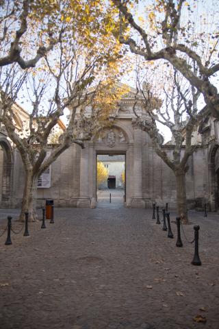 禁区的大门是François Royers de la Valfenière在雕塑家Barthélémy Grangier 帮助下完成的作品。院长堂·克里桑特-保兰原来订制了开向新城大街的 一个巨大入口,这座大门 只是把尺寸缩小而已,在1648-1649年间完成。